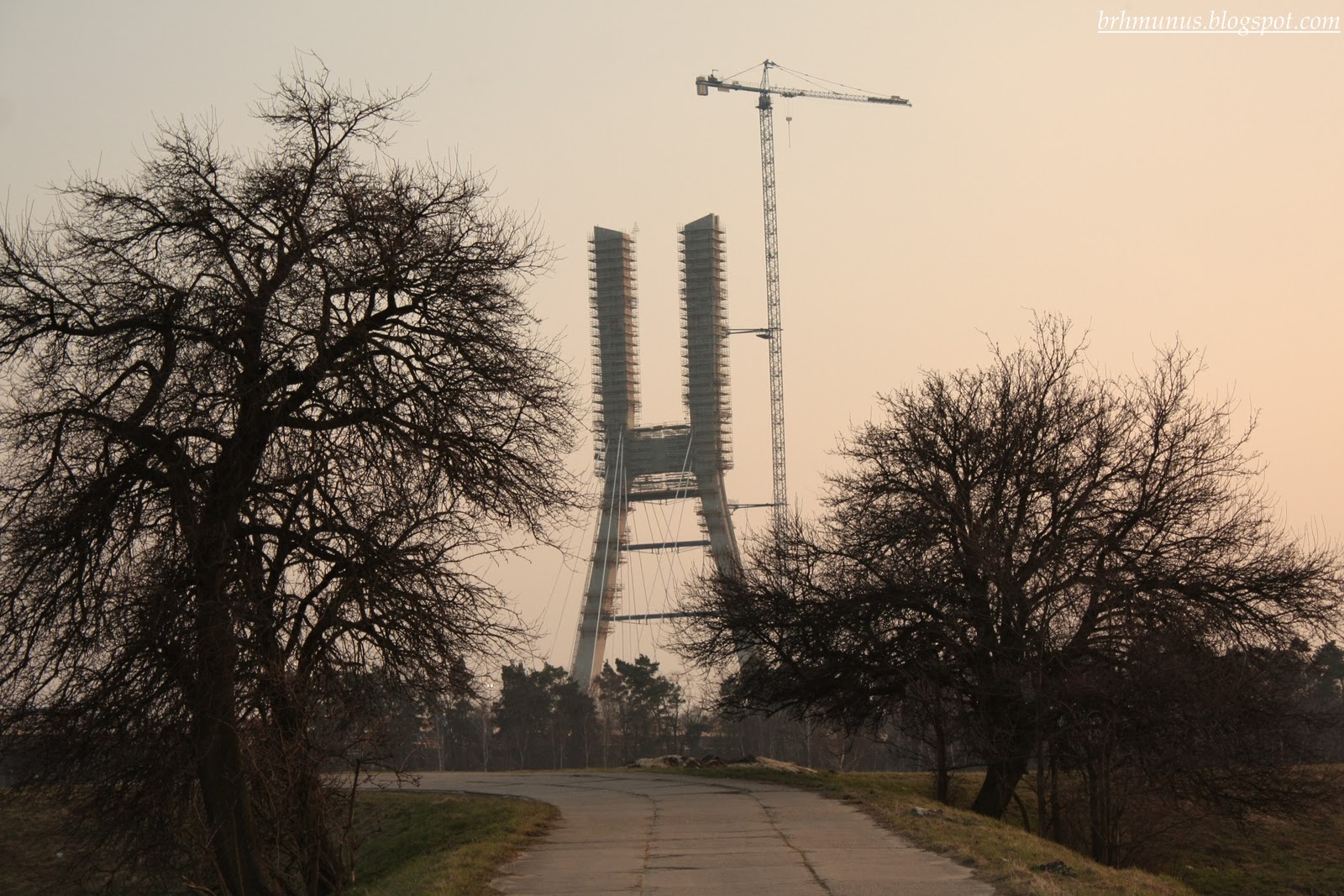 I jeszcze pylon trochę bliżej. Widać liny, które już są rozciągane.
